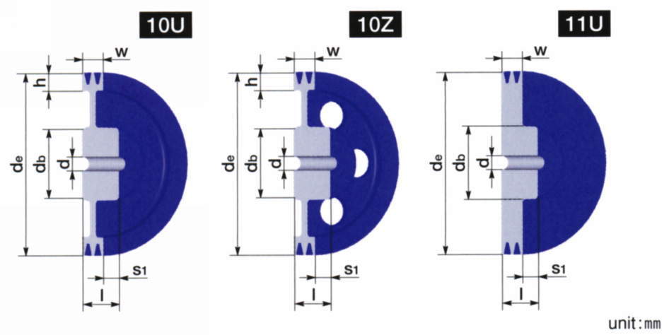 ・材質・加工精度・バランス精度ともにJIS規格(JIS B 1855-1978)「細幅Vプーリ」)を上回る最高品質のプーリーです。