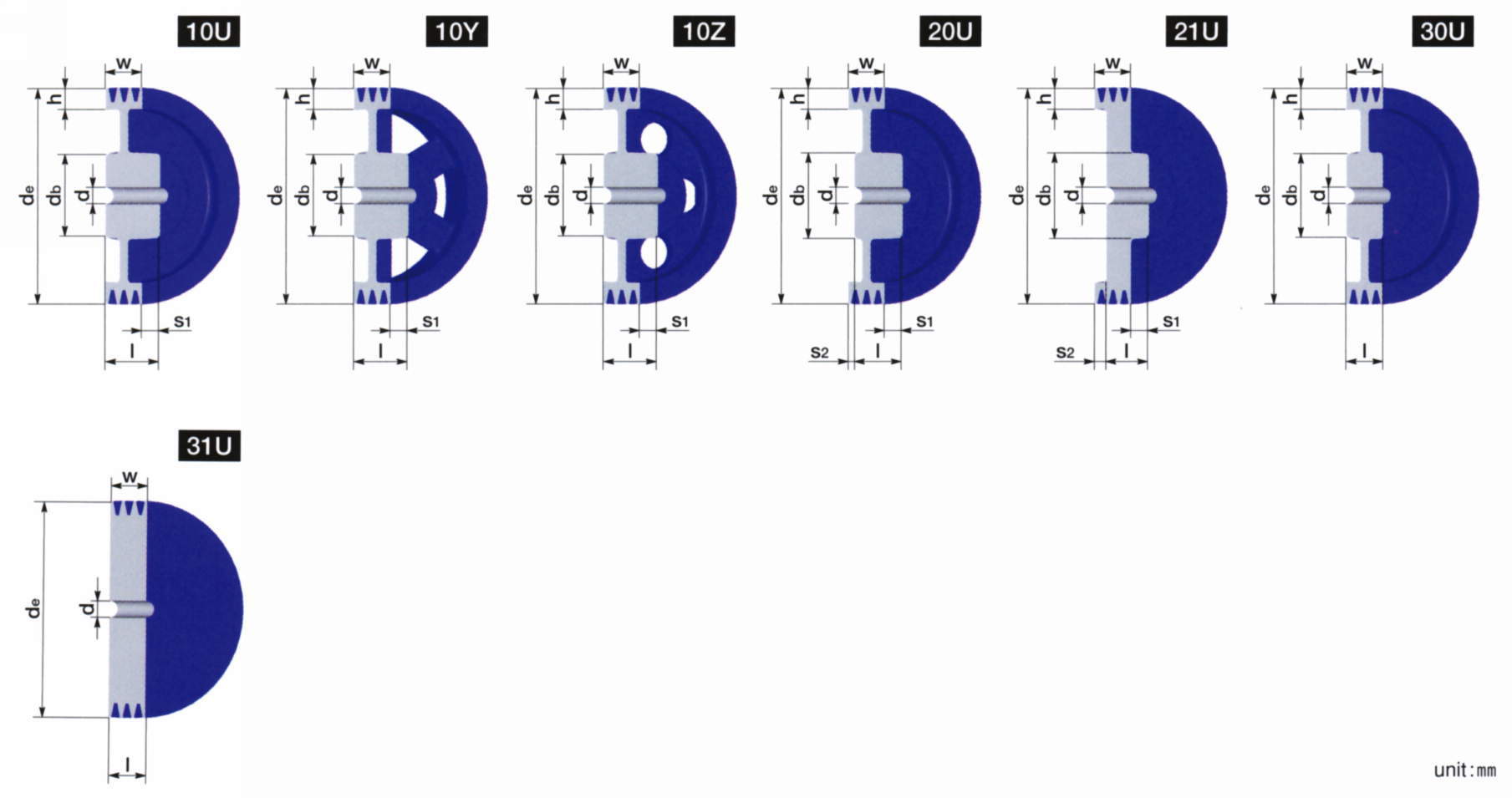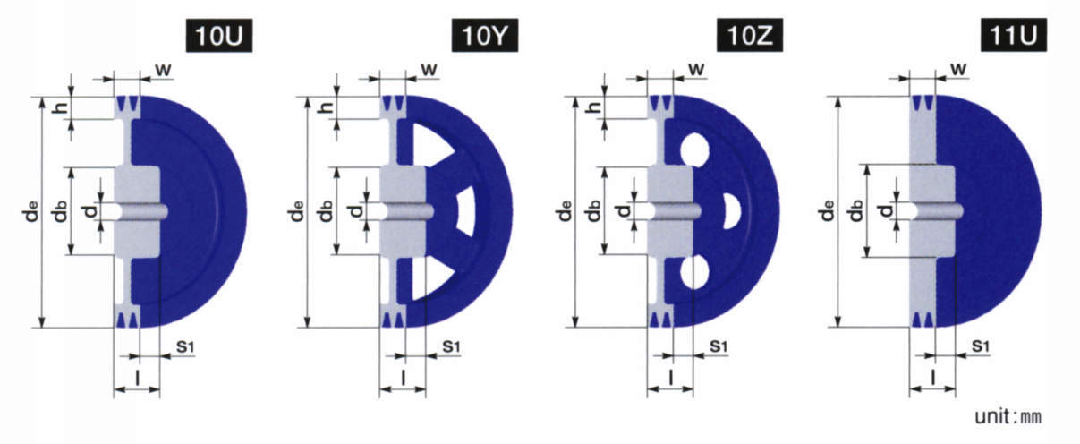 ・材質・加工精度・バランス精度ともにJIS規格(JIS B 1855-1978)「細幅Vプーリ」)を上回る最高品質のプーリーです。