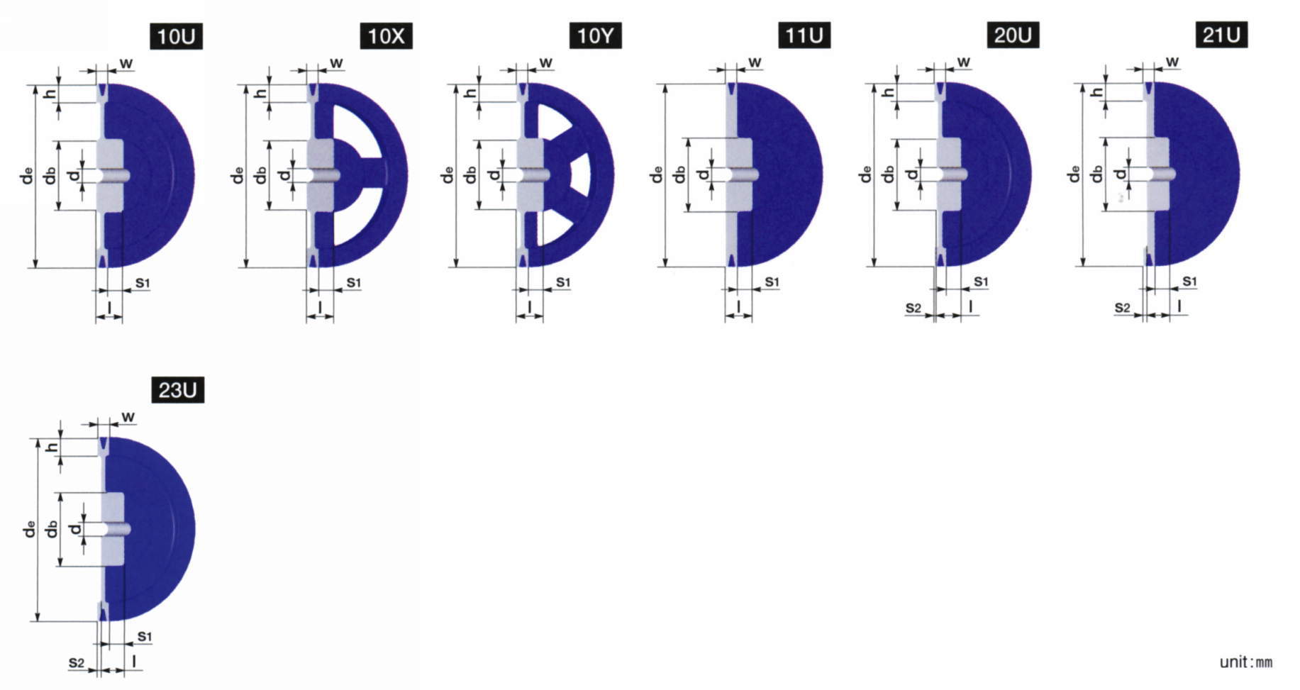 軸穴径d(mm) | 形状図番 | 溝本数 | ハブ (mm) | リム (mm) |