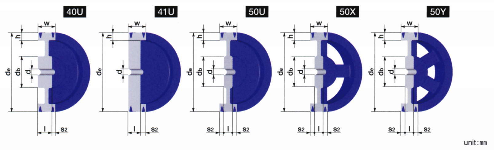 軸穴径d(mm) | 形状図番 | 溝本数 | ハブ (mm) | リム (mm) |
