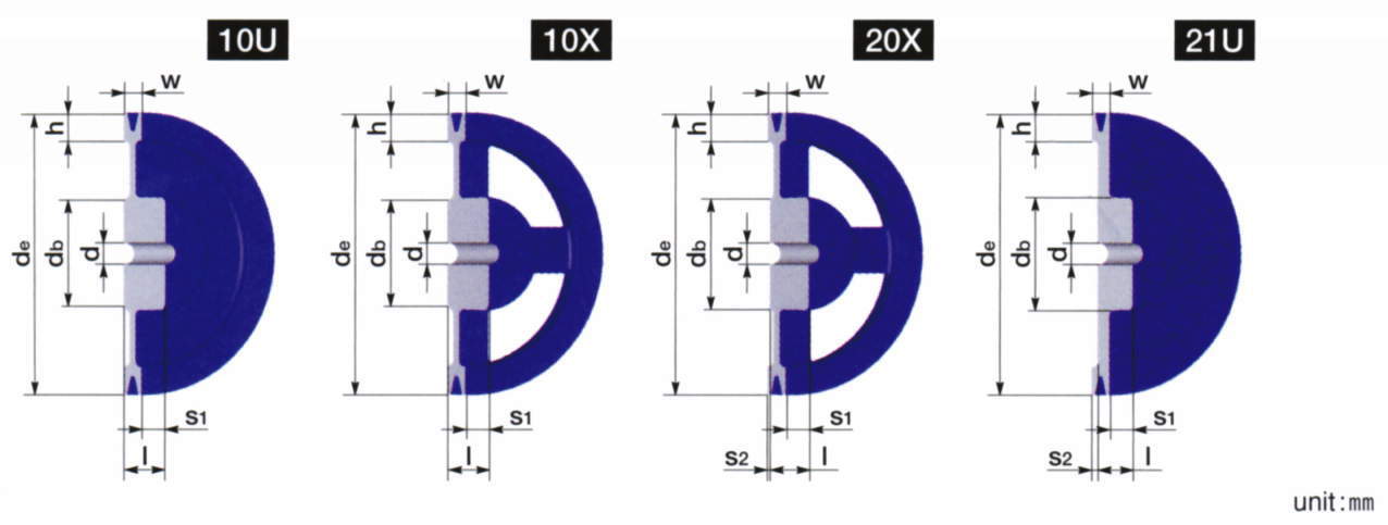 ・材質・加工精度・バランス精度ともにJIS規格(JIS B 1854-1987)「一般用Vプーリ」)を上回る最高品質のプーリーです。