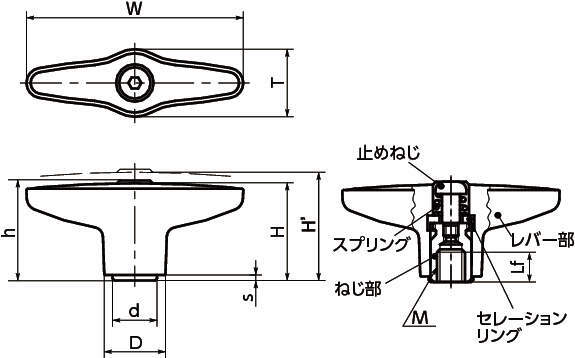 型式 歯数 W M H H' h T s D d Lf min. 最大荷重