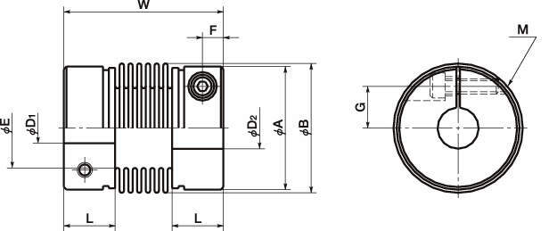 ・ベローズタイプのフレキシブルカップリング。高トルクに対応できます。