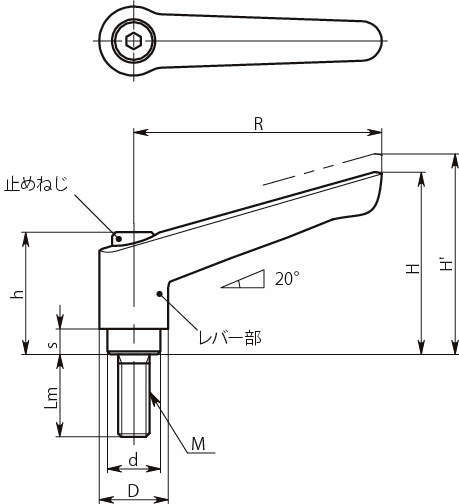 ・亜鉛ダイカスト製のセレーションリングをプラスティック製レバー本体にインサート。金属製のねじのセレーションとのかみ合いにも充分な強度を実現しています。