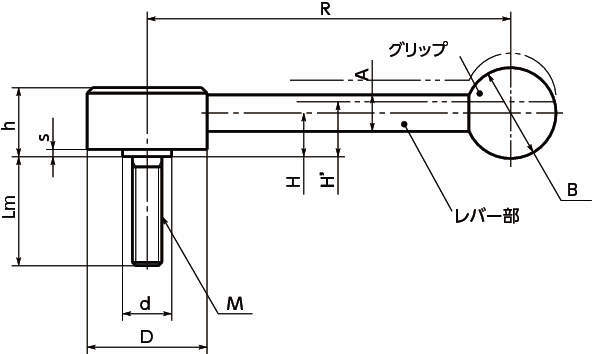 | レバー・ねじ | S45C、四三酸化鉄皮膜(黒) |