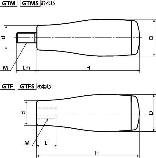 | 型式 | タイプ | 材質 | Lm | Lf | D | M | d | H |