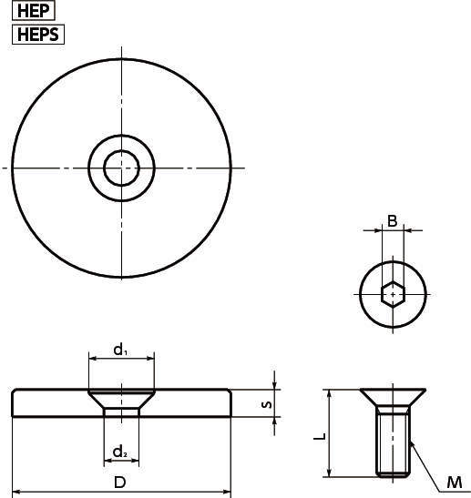| ねじ | HEP:SCM435、四三酸化鉄皮膜(黒) HEPS:SUSXM7 |