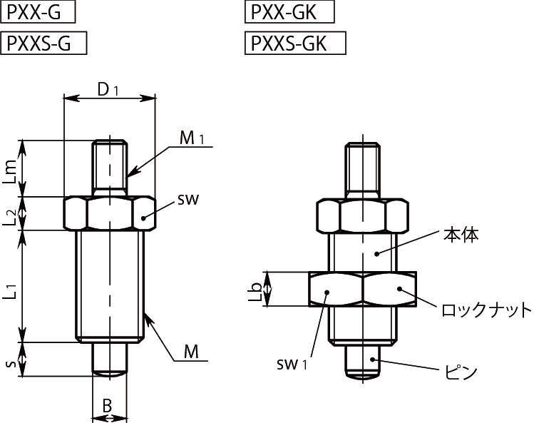 | ロックナット | PXX:S45C、四三酸化鉄皮膜(黒) PXXS:SUS303 |