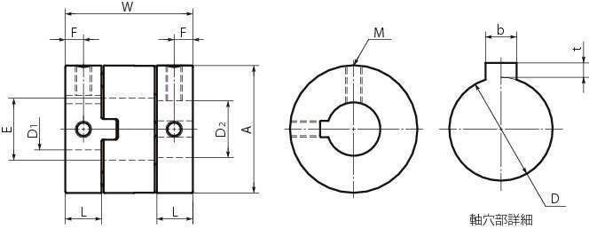 A L W E F G M D1 D2 呼び 寸法 b t 呼び 寸法 b t