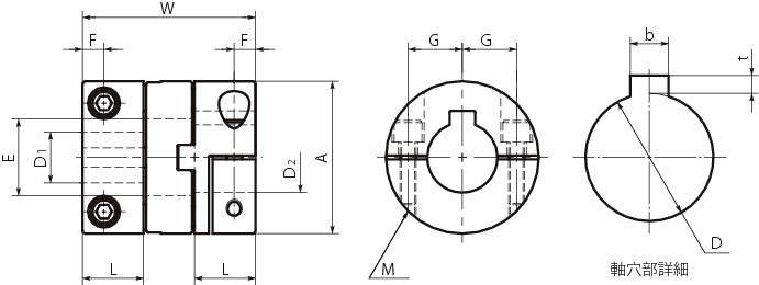 A L W E F G M D1 D2 呼び 寸法 b t 呼び 寸法 b t
