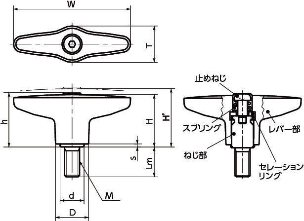 ・亜鉛ダイカスト製のセレーションリングをプラスティック製レバー本体にインサート。金属製のねじのセレーションとのかみ合いにも充分な強度を実現しています。