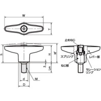 ・亜鉛ダイカスト製のセレーションリングをプラスティック製レバー本体にインサート。金属製のねじのセレーションとのかみ合いにも充分な強度を実現しています。