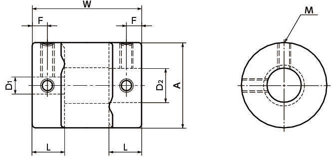 ・両側のハブを防振ゴムで成型した、完全一体構造のカップリングです。