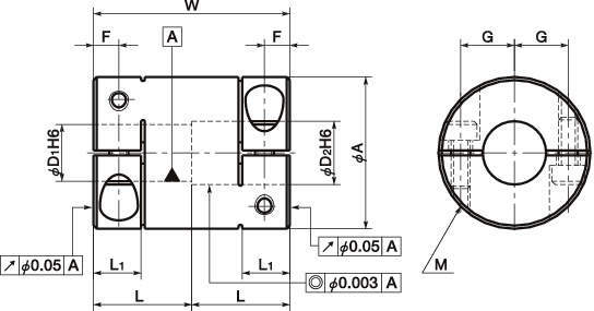 ・両軸穴の同芯度は3μm以下です。