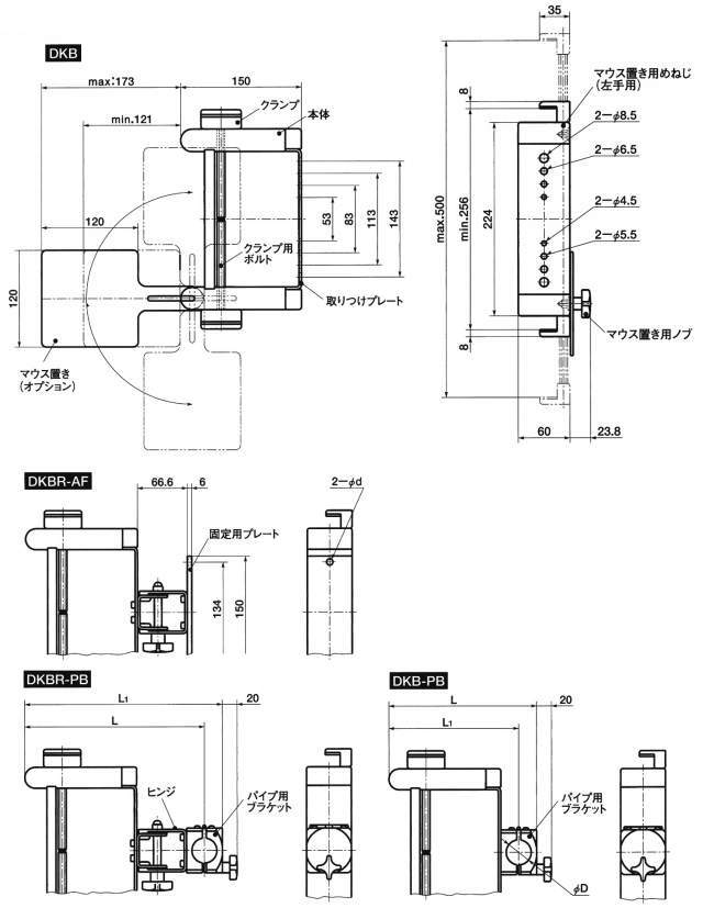 | タイプ | DKB・DKBR-AF:壁面用・アルミフレーム用 DKB-PB・DKBR-PB:丸パイプ用 |