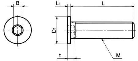 ・六角穴付き極低頭ボルトの全ねじタイプ。