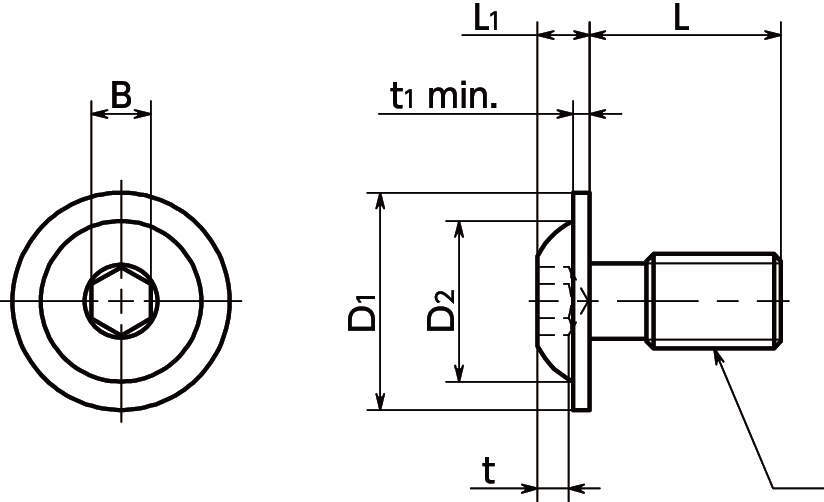 ・頭部のフランジにより、キリ穴が大きな薄板でも座面を確保し、固定が可能です。