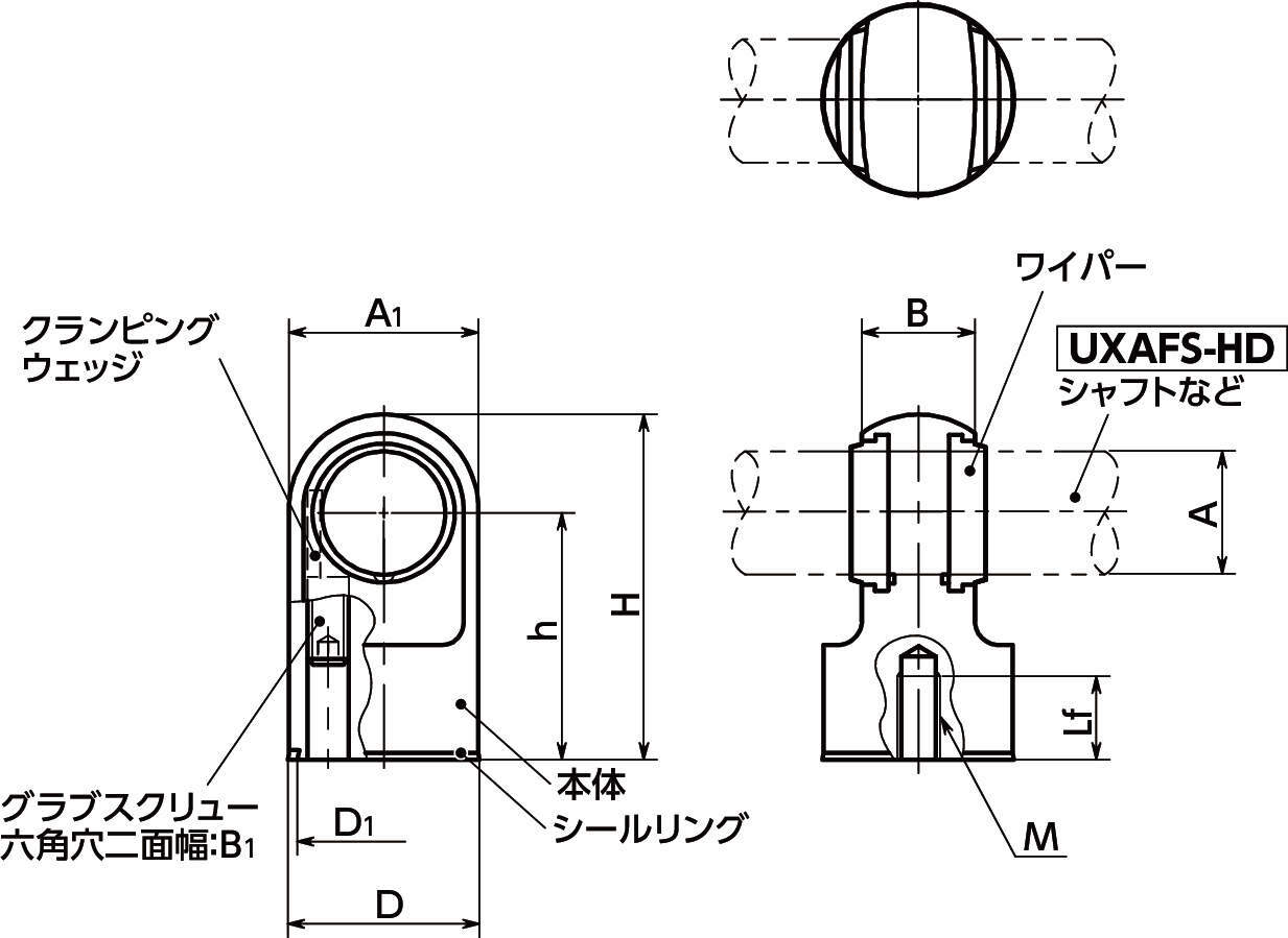 ・A寸法に対応する直径のシャフトやパイプにもご使用いただけます。