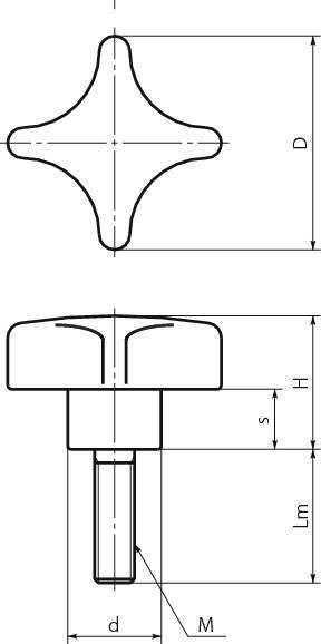 十字ノブ(おねじ) KJM・KJMS・KJM-PF