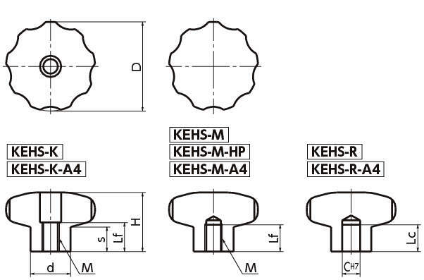 | 材質・仕上げ | KEHS-K・KEHS-M・KEHS-R:SUS303、ショットブラスト KEHS-M-HP:SUS303、研磨 KEHS-K-A4・KEHS-M-A4・KEHS-R-A4:SUS316L、ショットブラスト |