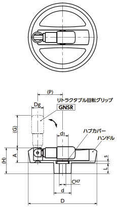 | グリップ | リトラクタブル回転グリップ GNSR、ナイロン6(つや消し黒) |