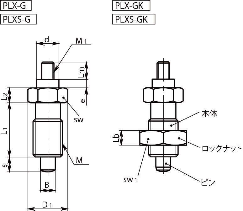 | ロックナット | PLX-GK:S45C、四三酸化鉄皮膜(黒) PLXS-GK:SUS303 |