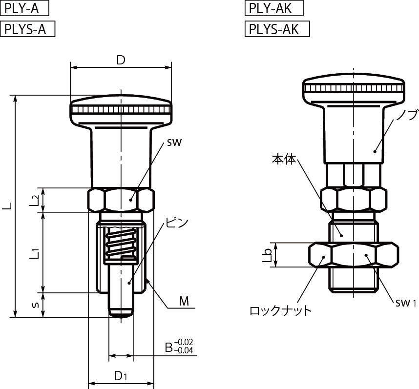 | ロックナット | PLY-AK:S45C、四三酸化鉄皮膜(黒) PLYS-AK:SUS303 |