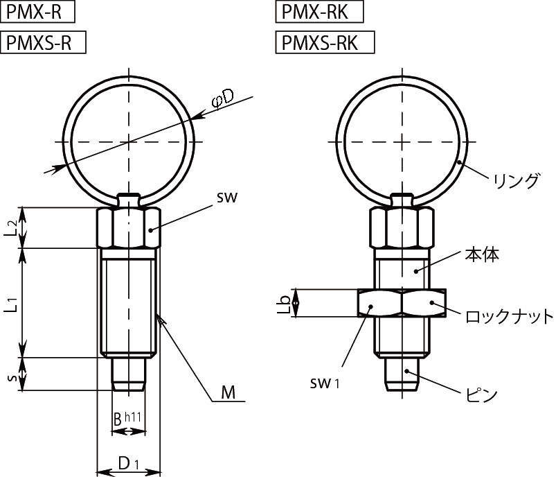 PMX-10-M16-1.5-R ロックナットなし スティール - - 10 10 M16×1.5 19.6 30 26 9 17 4/27 7280 62