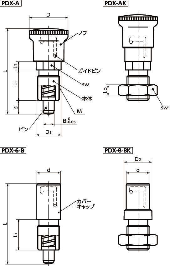 | ピン | PDX-B・PDX-BK:S45C(硬度50~60HRC) |