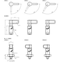 ロック機構つきタイプ:レバーを120°回すと、ピンが完全に飛び出し、ガイドピンが本体の溝にはまりロックします。ロックの解除はレバーをわずかに押しながら反対側に回します。レバーを少し回すと、内蔵スプリングの力でピンは元の位置に戻ります。
