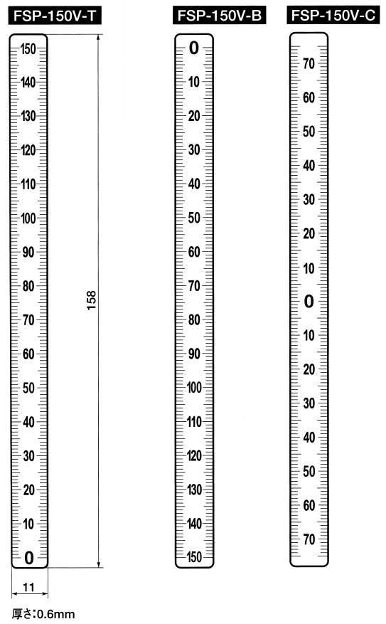 ・ステッカタイプの縦型スケールプレート。機械・装置などに貼りつけてご使用ください。