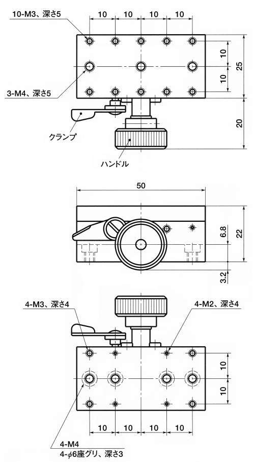 取りつけ用ねじ穴部に座グリ加工をしています。このため上下方向からの固定が可能です。