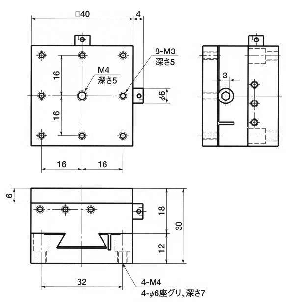 取りつけ用ねじ穴部に座グリ加工をしています。このため上下両方向からの固定が可能です。