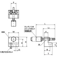 ・ウレタンつきストッパボルト「NSBUH」を組み込んだリニアガイド用ストッパ。