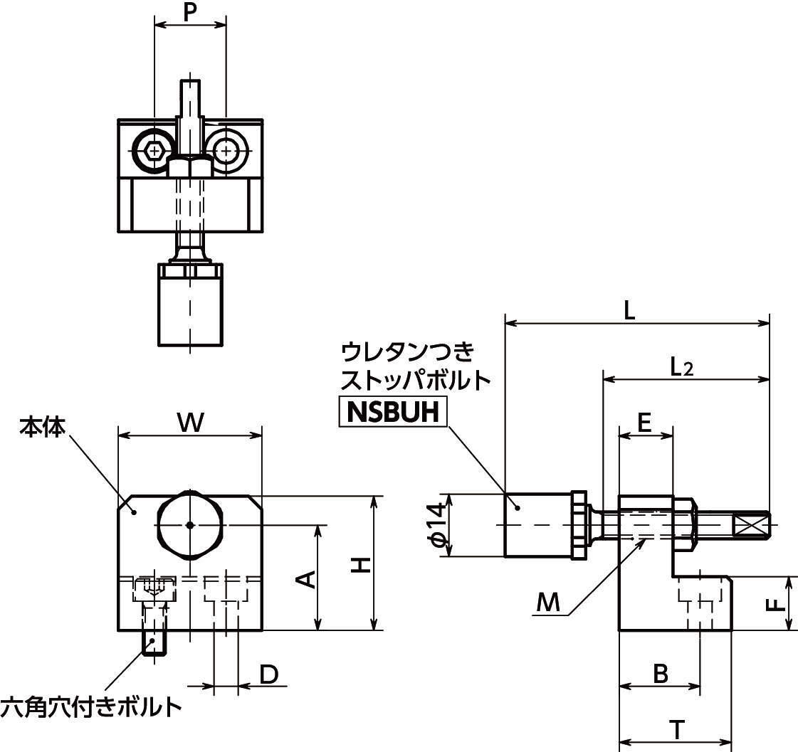 ・ストッパボルトはねじ込み量の微調整が容易な細目ねじタイプ。
