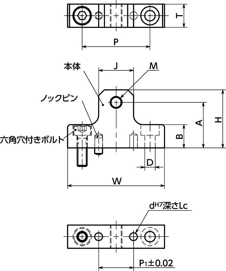 ・全商品に取りつけ用の六角穴付きボルトとノックピンが付属しています。