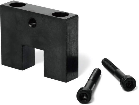 ・ねじ穴(細目)加工済みの門型リニアガイド用ストッパ。レール上部からの取りつけが可能です。
