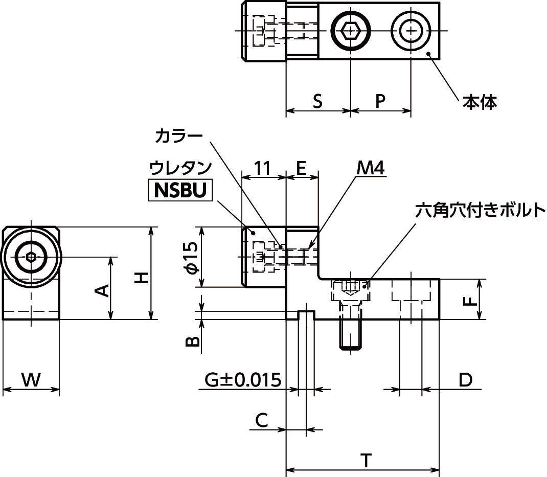 | ウレタン「NSBU」:六角穴付き低頭ボルト | S45C 三価クロメート処理 |