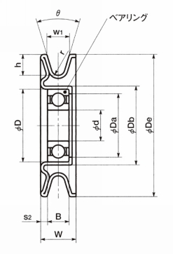 | 型式 | 溝形状 | De | Da | Db | W | w1 | s2 |