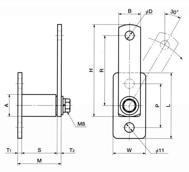 ・ゴムばね部とアイドラー取りつけアームとは4方向いずれにも組みつけ可能。しかもゴムばね部を機械に固定したまま調整できます。