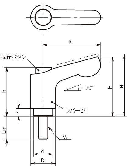 ・位置調整でレバー部を引き上げるとき、操作ボタンがあると、力が加わりやすく操作が容易になります。