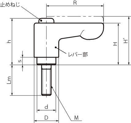 ・コンパクトタイプのフラットクランプレバー。上部スペースに制限がある用途に適しています。
