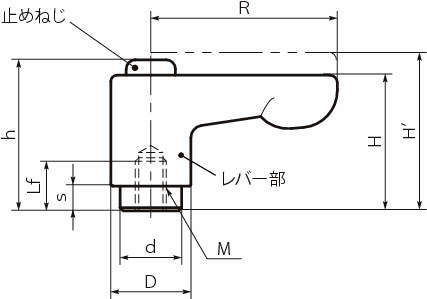 ・コンパクトタイプのフラットクランプレバー。上部スペースに制限がある用途に。