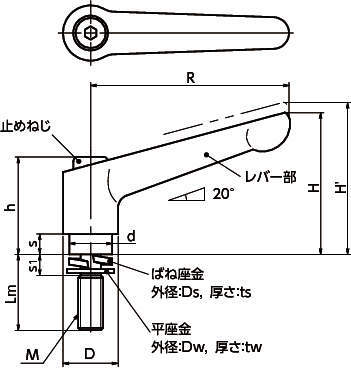 クランプレバー ばね座金組み込みタイプ(おねじ) LDM-W・LDMS-W