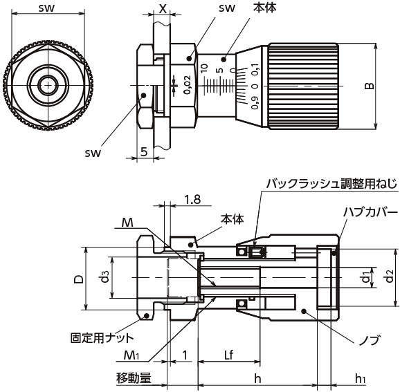 ・おねじ部品を取り付けることで、マイクロメータと同様の正確な位置決めが可能です。