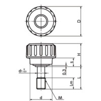 | 型式 | ノブの色 | D | M(並目) | Lm | H | S | d | d1 | |