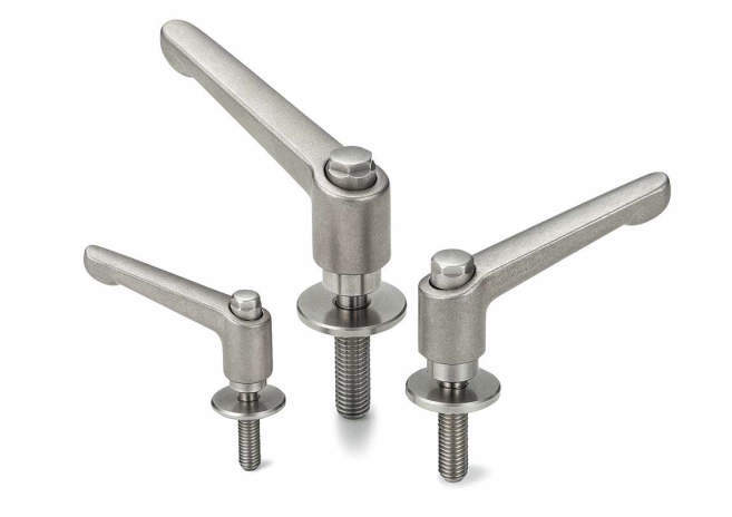 ・平座金が組み込まれた、オールステンレス製のクランプレバー。