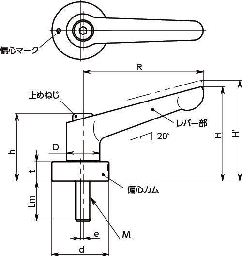 ・レバーを引き上げれば、偏心カムに対してレバーがフリーになり、レバーの位置を自由に変更することができます。