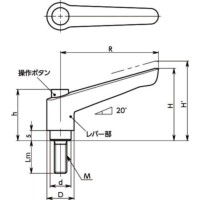 ・操作ボタンつきのプラクランプレバー。おねじタイプ。