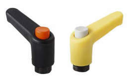 ・操作ボタンつきのミニプラクランプレバー。めねじタイプ。
